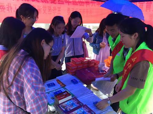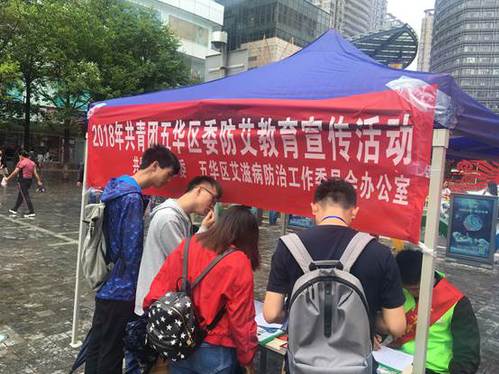 为进一步加强禁毒防艾宣传教育工作力度,扩大禁毒防艾知识的公众知晓率,结合省、市、区关于开展禁毒人民战争的相关要求,共青团五华区委于6月23日联合五华区禁毒办、区防艾办在南屏步行街开展2018年禁毒防艾宣传活动,针对过往青年、辖区居民、外来务工人员进行禁毒防艾知识宣传,来自云南警官学院法学专业的学生进行现场答疑、青年禁毒志愿者向过往群众发放《云南省举报毒品违法犯罪奖励暂行办法》、《家庭禁毒手册》、《珍爱生命 拒绝毒品 认识和防范新型毒品》、《携手抗艾 重在预防》等宣传材料及印有禁毒宣传标识的纸巾及扑克牌,共发放禁毒防艾宣传材料3000余份、纸巾及扑克牌500余套。