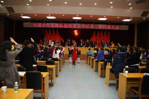 2019年1月14日下午,中国少年先锋队昆明市五华区第三次代表大会胜利闭幕。大会审议通过了张媛同志代表少先队五华区第二届工作委员会所作的《不忘初心 牢记嘱托 培育新时代好队员 为建设区域性国际中心城市高品质核心区时刻准备着》的工作报告,回顾总结了五华区第二次少代会以来的少先队工作,选举产生了新一届少工委,确定了今后三年我区少先队工作的目标和任务。