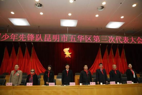 伴随着少先队员灿烂的笑容,2019年1月14日,中国少年先锋队昆明市五华区第三次代表大会在五华区行政中心顺利召开。来自五华区各单位和学校的159名少先队员、少先队辅导员和少先队工作者欢聚一堂,选举产生新一届少工委委员,共议五华少先队事业未来三年发展大计。共青团昆明市委副书记黄斌、中共五华区委副书记赵志良、五华区人大常委会副主任布艳芬、五华区人民政府副区长徐静、五华区政协副主席陈达祥等领导出席会议。应邀出席会议的还有区属各人民团体主要负责人,区各直属团组织负责人、盘龙区少工委负责同志。
