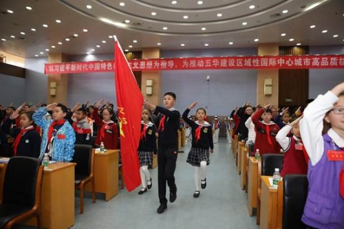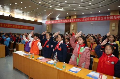 会议在庄严的少先队仪式中拉开序幕,来自红旗小学的少先队员向大会献词,表达了少先队员对大会的美好期望和对未来的憧憬。盘龙区少工委主任康雷同志代表友邻县区致贺词,表达了兄弟县(市)区同舟共济、携手并进,共同谱写少先队工作新篇章的良好祝愿。中共五华区委赵志良副书记和共青团昆明市委黄斌副书记发表讲话,充分肯定了五华区少先队取得的成绩,对今后的工作提出新的更高要求。