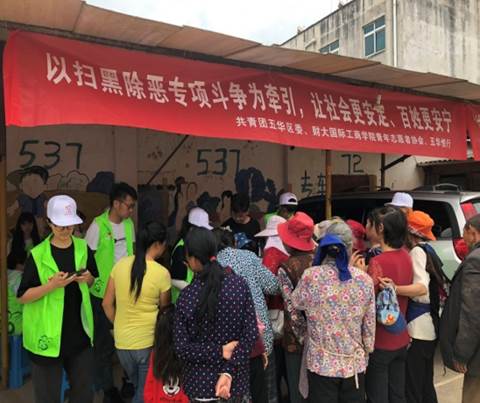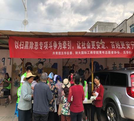 2019年5月24日,共青团五华区携手五华区悦行青少年社会事务发展服务中心在西翥街道大村社区开展“以扫黑除恶专项斗争为牵引,让社会更安定、百姓更安宁”主题宣传活动。