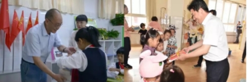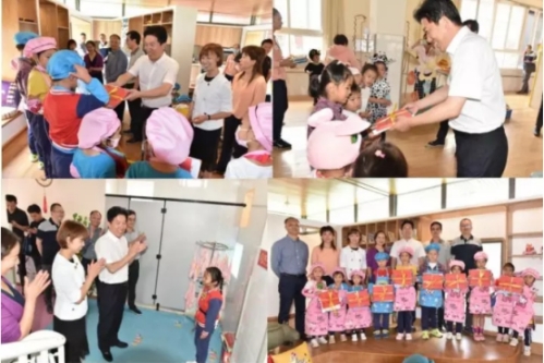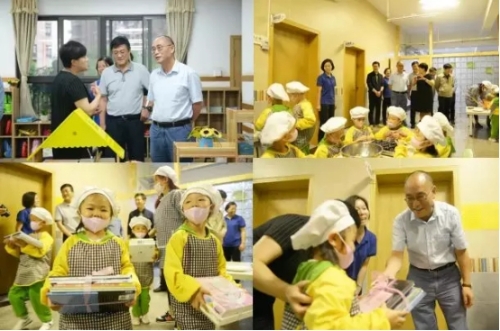 在西翥二幼,王秀江一行了解了幼儿园的各区域环境,观看了孩子们在生活馆中制作各种美味食物,在富有厂口地域文化气息的“赶街”游戏区饶有兴致地和小朋友们一起感受了赶集游戏,并为孩子们送上节日的礼物,西翥二幼的孩子们深深感受到了领导们的深切关爱。