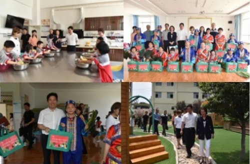 在昆明五华慧谷幼儿园,陈伟一行仔细察看了幼儿园的教学设施、活动环境和食堂厨房环境,现场观看了小朋友们的厨艺小课堂和美术手工小课堂,亲切地与孩子们互动,并给孩子们送上有趣的儿童读物,祝贺孩子们节日快乐。