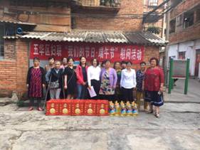 五华区属各街道和社区妇联纷纷组织以中华传统佳节为契机,走进困难家庭开展形式多样的端午节关爱活动。菱角塘社区妇联举办了“粽叶裹吉祥·喜庆又端午”暖心长街宴活动,老姐妹帮扶团的老大姐们准备的一道道丰盛的菜品摆满餐桌,大家频频举杯,同享佳节欢快气氛;北门社区组织党员、爱心人士和巾帼志愿者共同举办“和谐邻里情·浓浓粽飘香”端午主题活动,大家把包好的粽子送到空巢老人和贫困户家中,送去一份份温情和祝福;云冶社区妇联举办的包粽子比赛现场欢声笑语,志愿者和辖区居民们发挥所长,包出了各式各样的粽子送给孤寡老人,让他们切身感受到了家庭亲情和邻里真情;同时,学府社区妇联组织的爱心慰问养老院贫困老人、团山社区妇联组织的“温情端午送爱心”活动以及景星社区妇联开展的“浓情端午·粽香四溢”活动,也营造了出浓浓的节日氛围。
