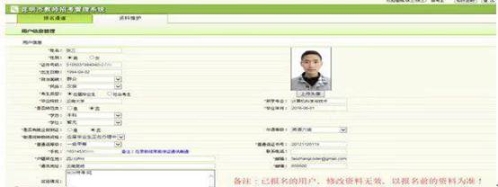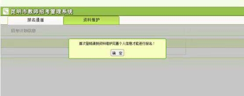 2、对于首次登陆的用户,系统会提示补充完善个人资料信息。必须填写完善资料,否则无法报名。