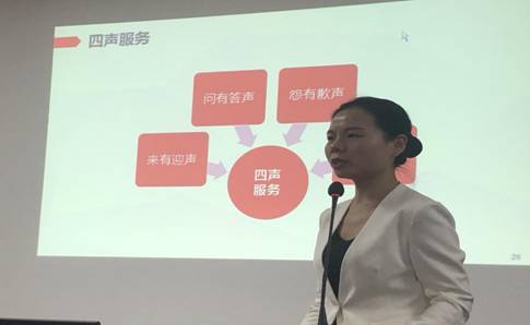 其次,高凤老师针对登记服务中导询及受理窗口服务流程中的每一细节逐一进行优化,譬如导询服务人员五步法(主动迎、笑相问、勤帮忙,严管控、目相送);窗口服务人员六步法(举手迎、笑相送、双手接、快速办、提醒递、目相送)等等。通过对本环节的详细讲解,进一步规范了导询及受理窗口的服务,详细地为每一位员工树立起了窗口服务榜样,为今后的窗口服务标准化打下夯实的基础。