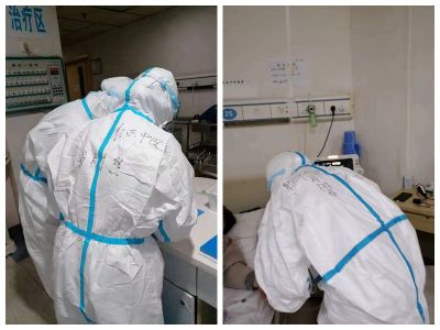 在我给她倒完小便后,她把我的手紧紧握住,我读懂了那是感动。看着她,我的眼泪止不住在眼眶里打转。我问她:“阿姨,有没有哪里不舒服”?她摇摇头。于是,我及时给她做了心理疏导:“阿姨放心,我们一直都在,不要怕”。我想此时此刻,支持和鼓励也是对抗病毒的“良药”吧!在我为她治疗结束将要离开的时候,她为我竖起了大拇指。在那一刻,我再一次为自己的职业而感到无比自豪!如今,在全国上下抗击疫情的关键时期,作为医务人员代表能够援助武汉,也注定是我的职业生涯中的宝贵财富。希望这个该死病毒快点消失,阳光灿烂的春天早日到来!