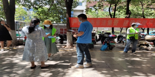 警惕非法集资 避免财产损失----为有效遏制非法集资行为,保护人民群众合法利益,维护正常经济金融秩序,营造防范非法集资和互联网金融风险的良好宣传舆论氛围,华山街道圆通社区结合实际,于6月16日在辖区范围内组织开展防范非法集资集中宣传教育活动。