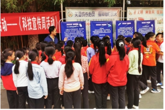 在升旗仪式上组织学生开展科普教育活动,科学组张老师在活动上发表了讲话,让学生们从小培养科学文化知识,让学生们开拓科技视野,增强动手能力,丰富科学素养。同时利用课内外时间,对学生进行了全方位的科普宣传和教育。在展板前,老师和孩子们交流我国北斗卫星导航系统,并认真为学生讲解科学相关知识,学生们表现出强烈的好奇心。