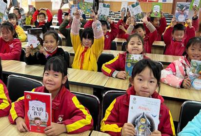 西坝小学90%以上的孩子都是外来务工随迁子女,平时父母忙于生计,很多孩子缺少课外读物。赠书仪式上,从孩子们拿到赠书时兴奋、激动的目光中,深切感受到了他们迫切分享书籍的热情。书的扉页印有“西坝学子雅存”的小印章,而且每个孩子可以找喜爱的老师签一句寄语,这会在他们心里种下一颗种子,让爱与幸福的感受如同涓涓细流,在校园里永远传递!