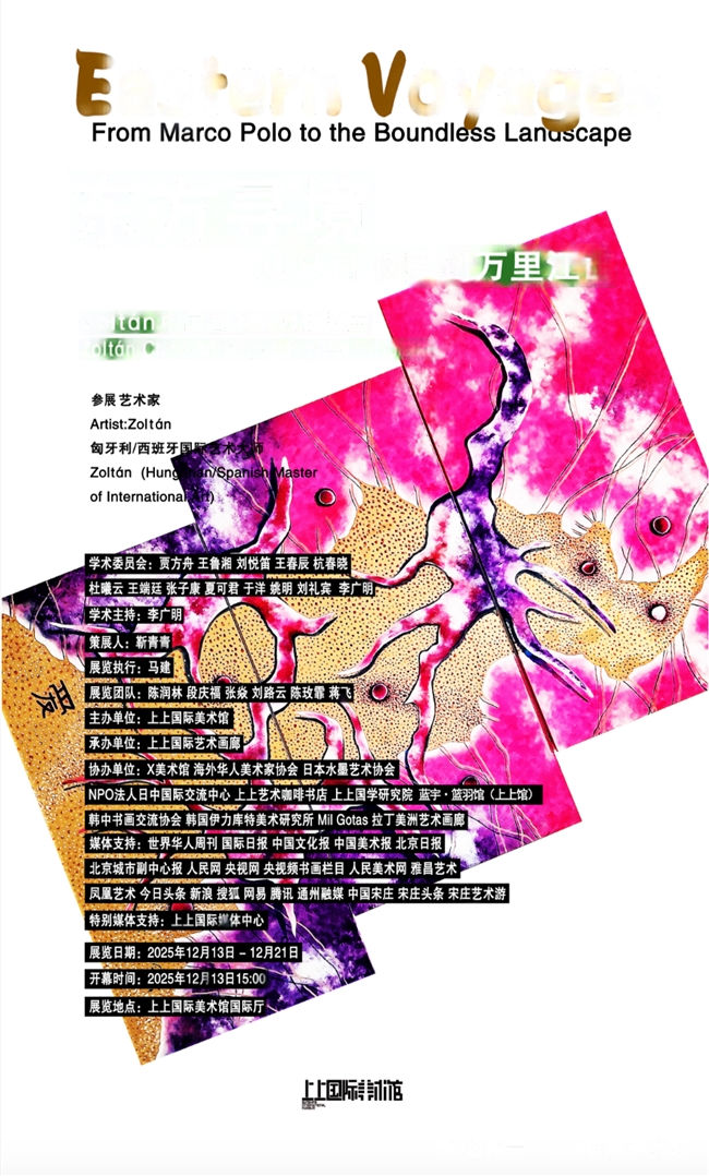 2025年12月13日下午,一场汇聚东西方艺术的对话盛典在北京上上国际美术馆隆重举行。下午3点30分,《东方寻境:从马可波罗到万里江山》—— Zoltán中国艺术计划预热展隆重开幕。展览通过精心策划安排的开幕活动,系统呈现了从中西文化互鉴,到历史精神回响,再到未来艺术共创的系统规划,并重磅发布了佐尔坦(Zoltán)与上上国际美术馆李广明馆长将共同创作《万里江山图》的艺术计划。
