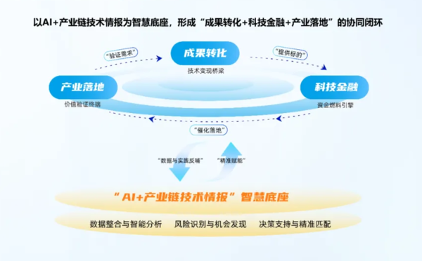大湾区中心以“AI+产业链技术情报”为智慧底座,联动“成果转化、产业落地、科技金融”三大核心板块,构建起覆盖创新全流程的完整价值闭环。